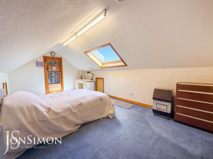 Large velux window, storage into the eaves and ceiling point.