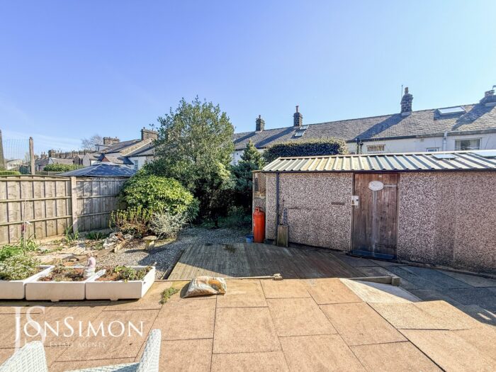 Rear: A large flagged and deck patio areas, outside water tap, well established borders and shrubs, large pebbled area and fence panel surround.