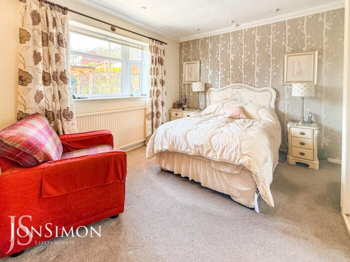 UPVC double glazed Bay fronted radiator, gas fire with surround, fitted wardrobes, ceiling coving, ceiling spotlights and TV point.