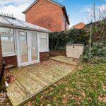 Rear: A decked patio area, lawn area, well established borders and shrubs.
