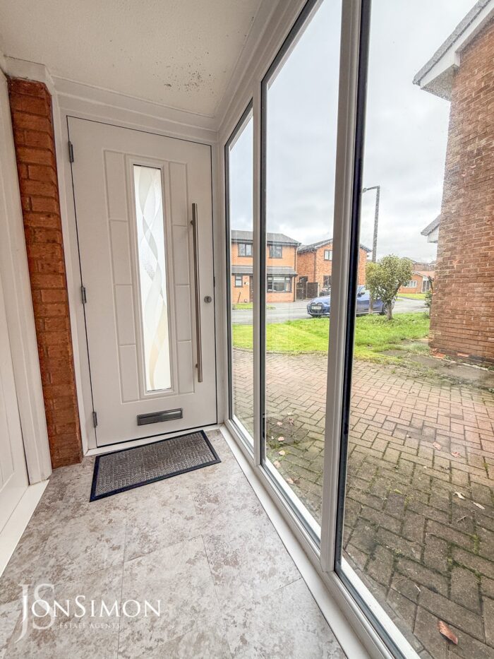 A composite double glazed front door, UPVC double glazed windows and ceiling spotlight
