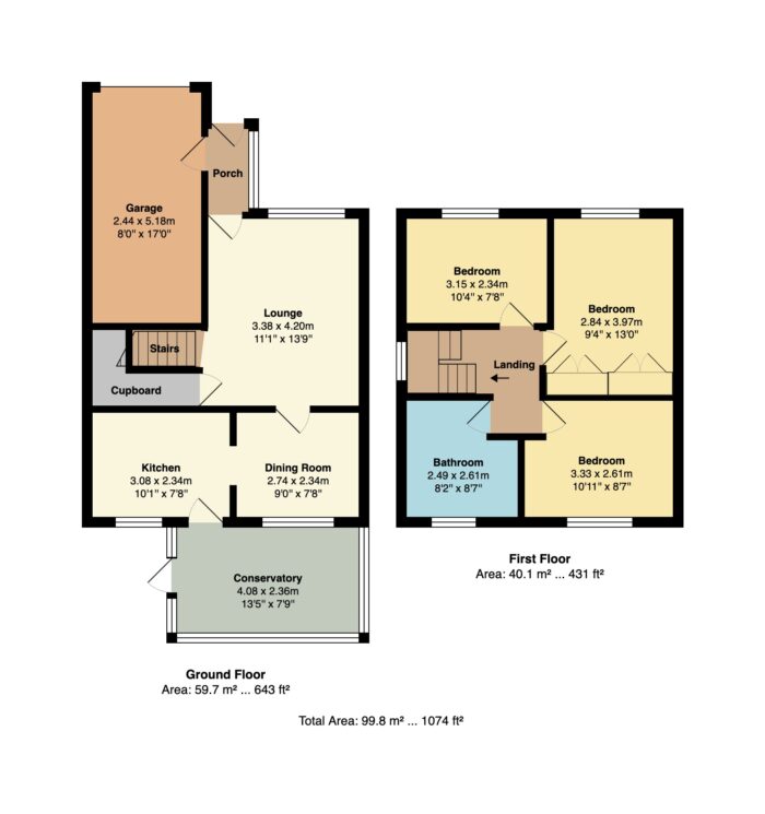 Rear: A flagged patio area, well-maintained lawn area, outside water tap, fence panel surround and gated access to the side and rear.
