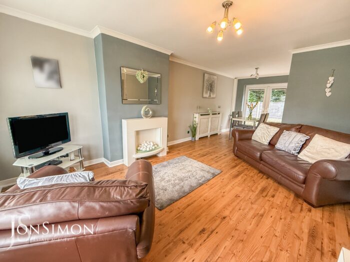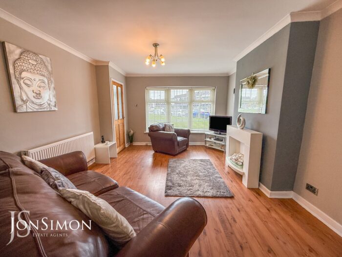 UPVC double glazed bay fronted window, electric fire with feature fireplace, radiator, laminate flooring, ceiling coving and ceiling point.