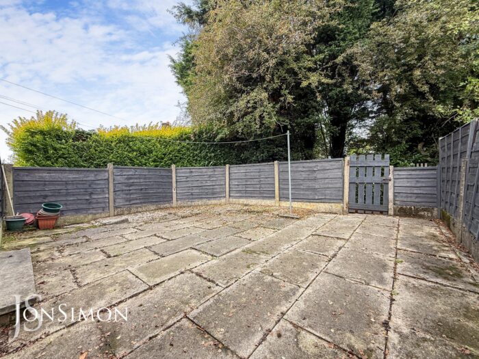 Rear: A low maintenance rear garden with flagged patio area, pebble borders, fence panel surround, gated access to the rear.