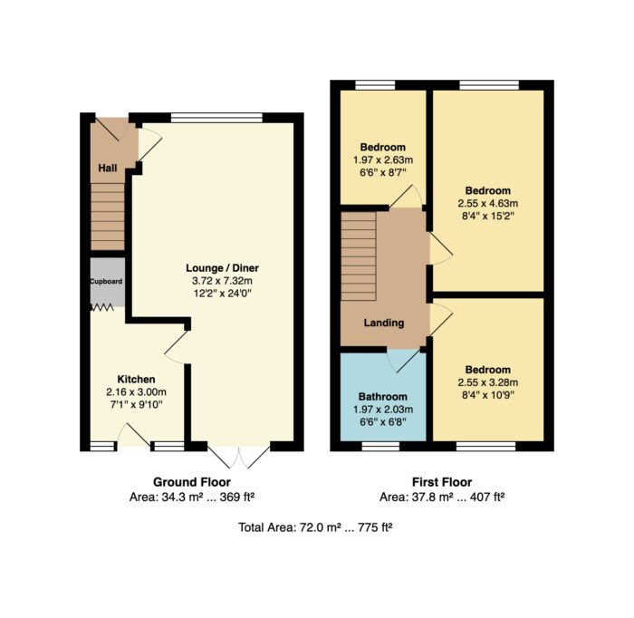 The property benefits from a garage situated to the rear, part of a communal block, offering secure parking or additional storage.