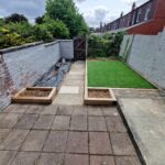 Enclosed rear yard with artificial grass