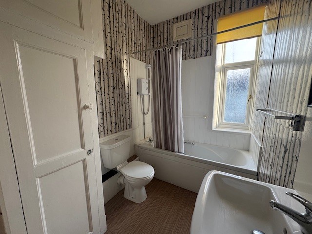 To the first floor, 1 double bedroom, 1 single bedroom and 3 piece bathroom suite with shower over bath.