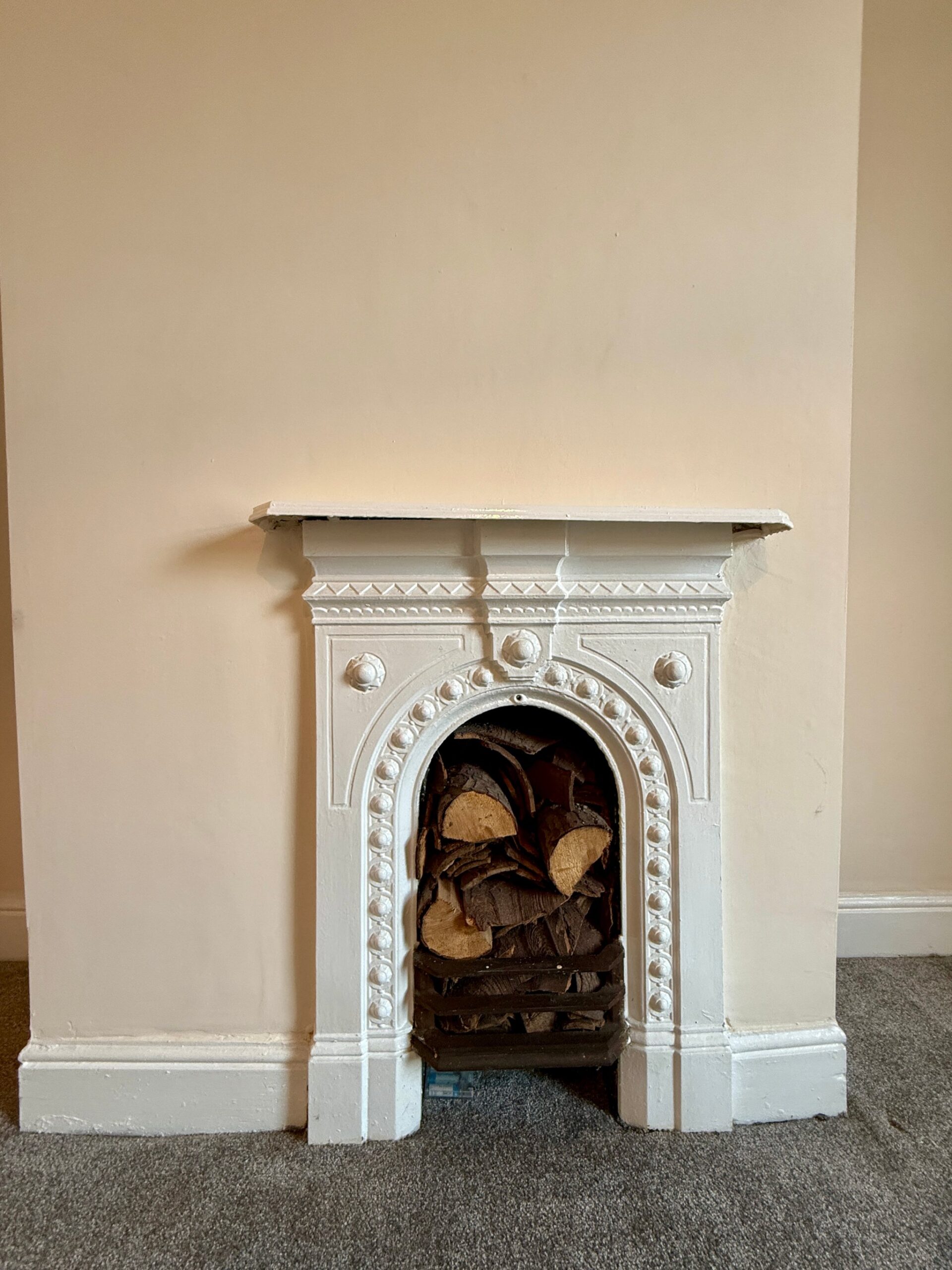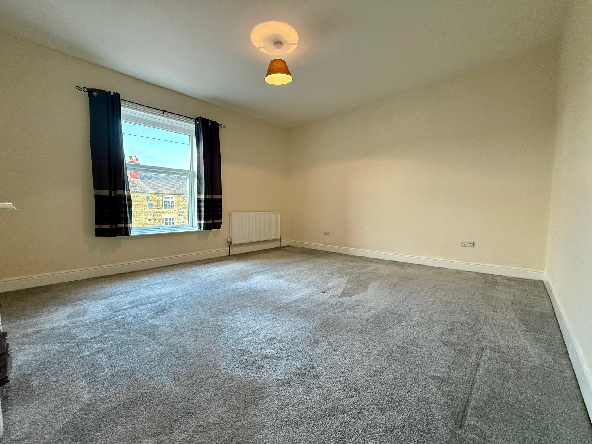 UPVC double glazed front window, radiator, feature fireplace and ceiling point.