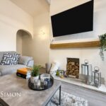 UPVC double glazed front window, radiator, TV point, feature insect stone fireplace, ceiling coving and ceiling point.