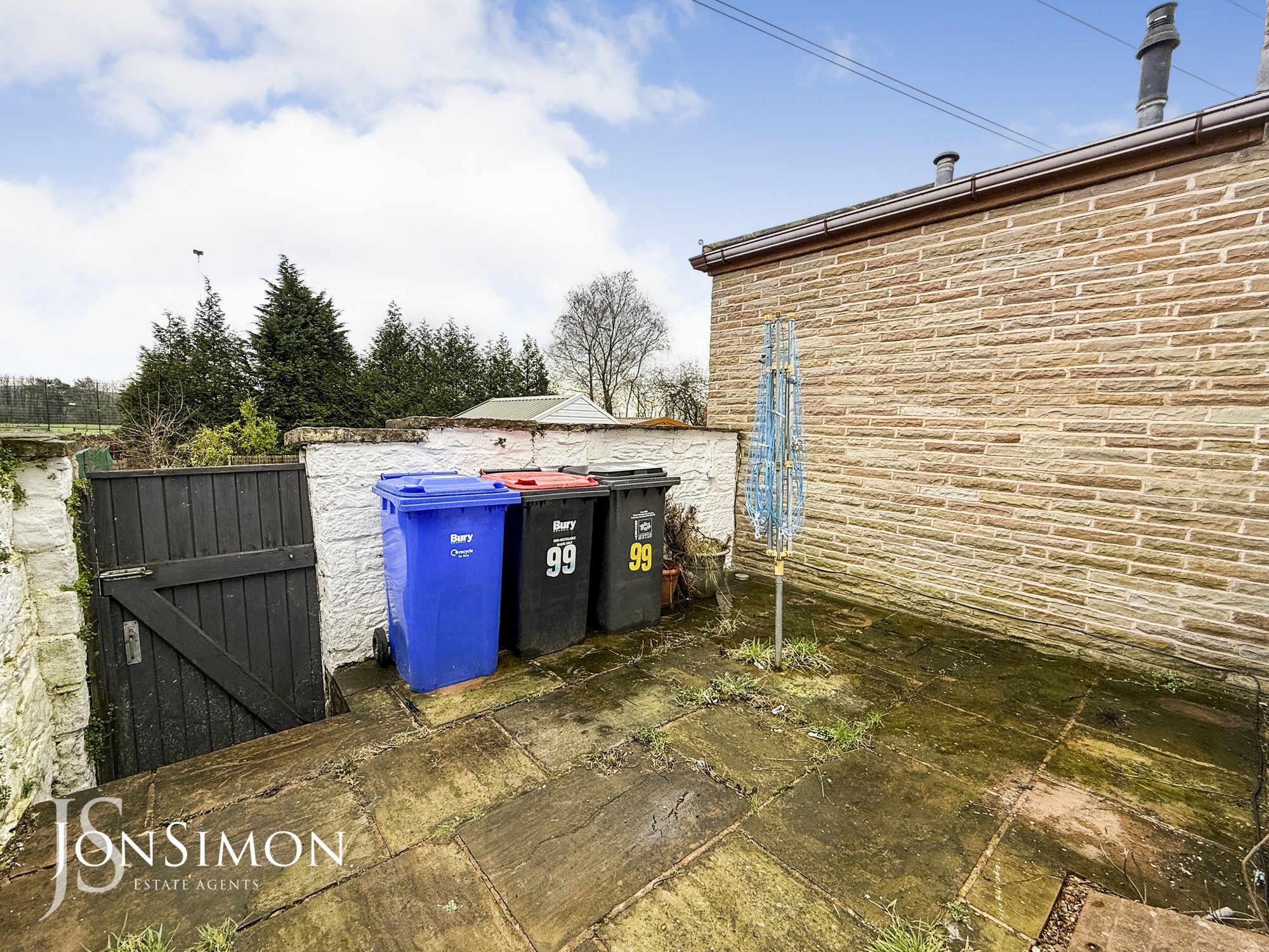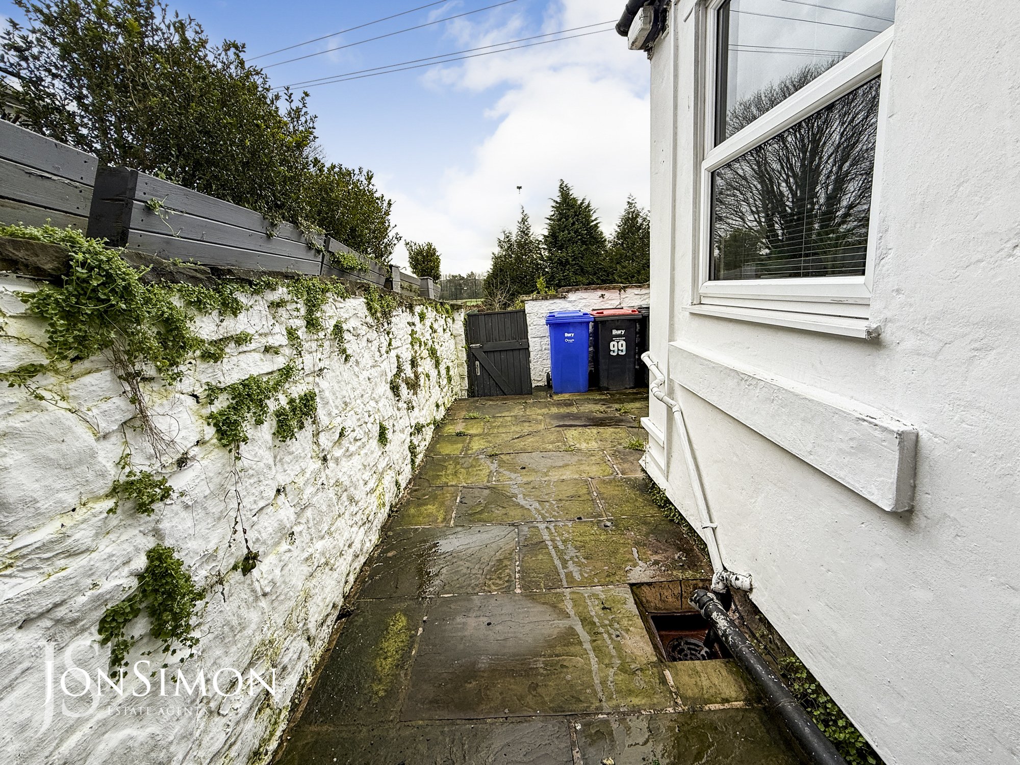 Rear: Indian paved enclosed rear yard, gas meter, stone walks surround, external lighting and gated access to the rear.