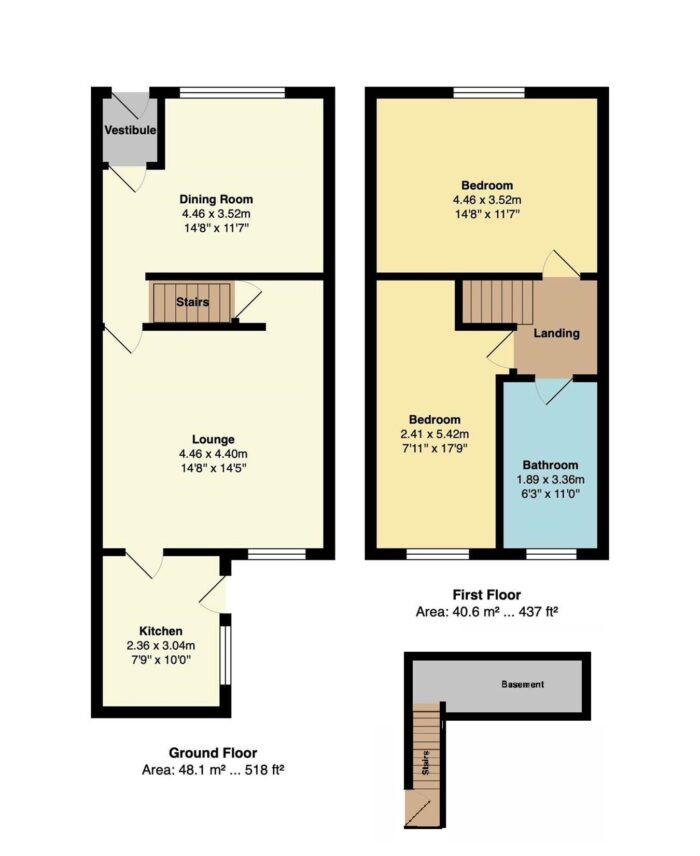 Stone steps leading down to cellar with stone flooring, electric meter and consumer unit and ceiling point. Second cellar under the dining room which spans the size of the dining room.