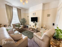 UPVC double glazed window, radiator, coal effect gas fire with surround, TV point, laminate flooring, under the stairs storage cupboard, ceiling coving and ceiling point.