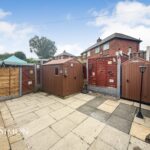 A flagged enclosed rear yard with fence panel surround, gate access to the side.