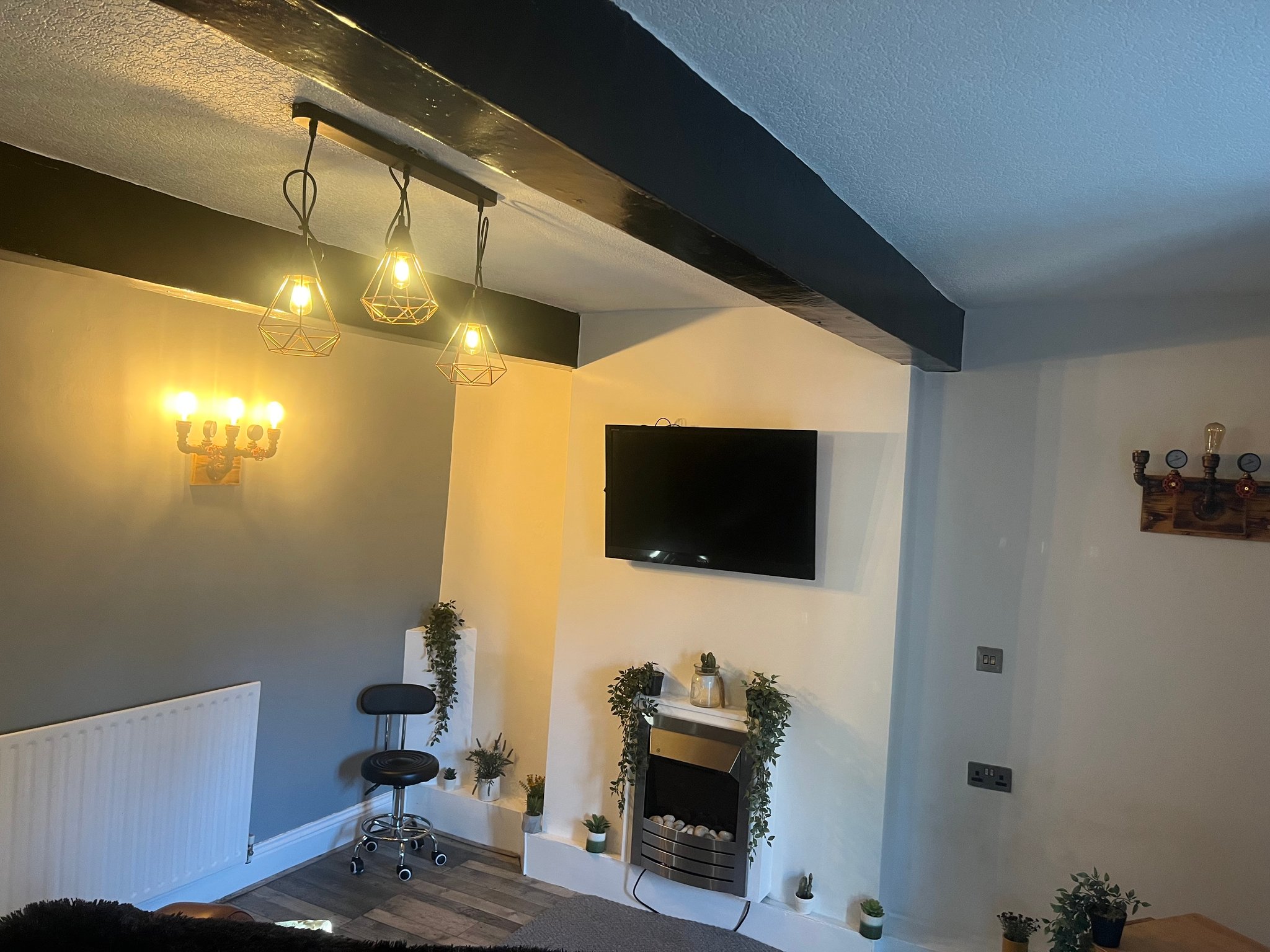 UPVC double glazed front window, radiator, TV point, laminate flooring, storage under the stairs, wall lights and ceiling point.