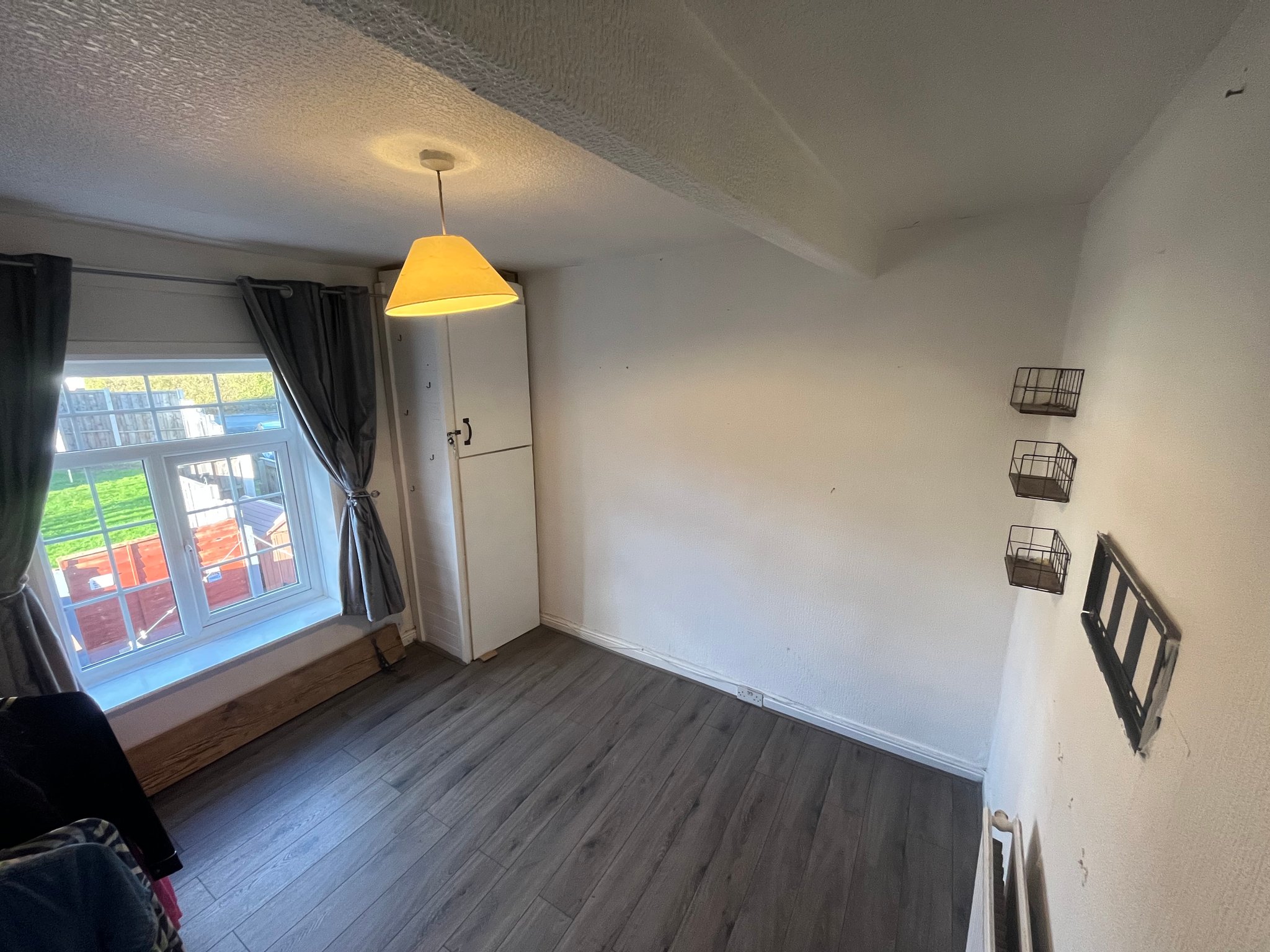 UPVC double glazed rear window, radiator, laminate flooring, storage cupboard housing the Combi boiler and ceiling point.