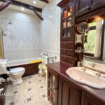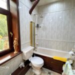 A three-piece suite comprising of a panel bath with mixer taps, shower above with shower screen, low level WC, wash hand basin with storage cupboards and drawers, fully tiled walls, radiator, tiled flooring, ceiling spotlights and UPVC double glazed rear window.
