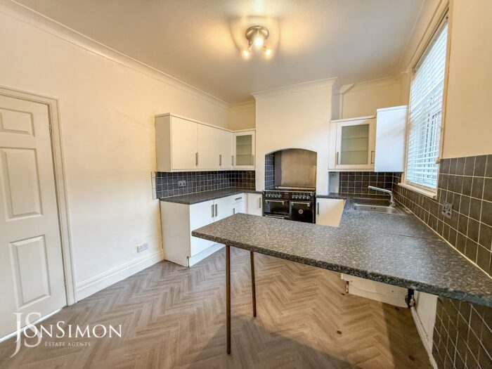 Range of wall and base units with complementary works surfaces, single bowl sink unit with drainer, range gas cooker with four ring gas hob, radiator, breakfast bar, part tiled walls, plumbed for washing machine, ceiling coving, ceiling point, large storage cupboard and stairs leads to the first floor landing.
