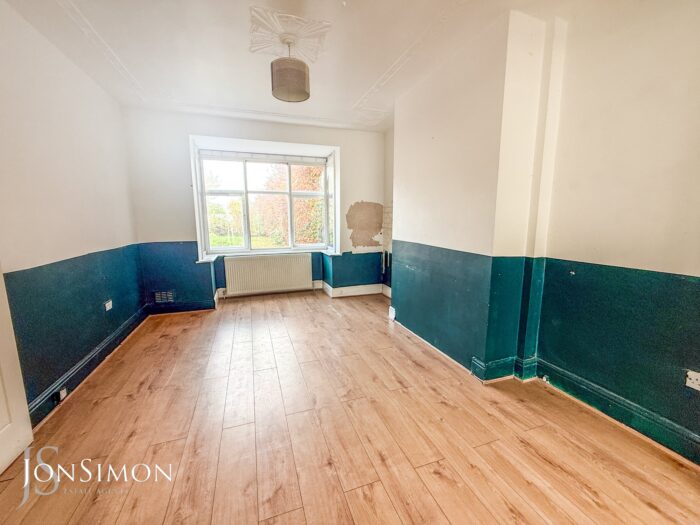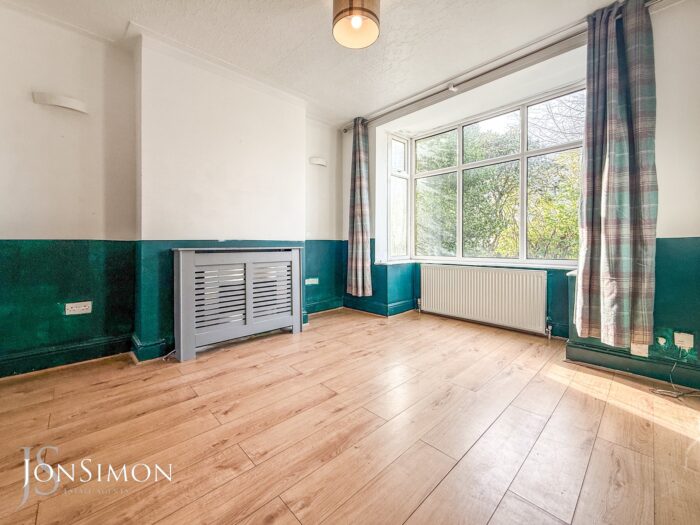 Double glazed bay fronted window, radiator, laminate flooring, ceiling coving and ceiling point.