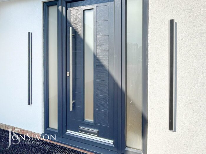 A composite double glazed front door and UPVC double glazed windows, radiator, storage cupboard with sliding doors, laminate flooring, double glazed Velux window, ceiling spotlights, ceiling points, storage under the stairs, oak and glass staircase leading up to the first floor landing.