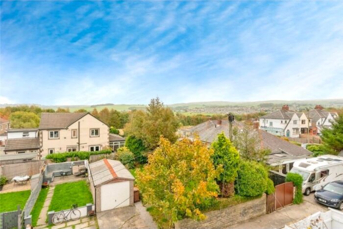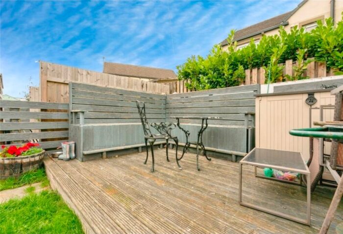 Located across the rear access road the rear garden boasts a laid lawn, enclosed panel fencing and a hard standing area currently used as off road parking.