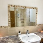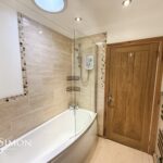 Panelled bath with shower, screen and mixer tap, combination unit with vanity wash hand basin, low level WC and storage, heated towel rail, light tube allowing natural daylight, mainly tiled elevations, extractor fan and spotlighting to ceiling.
