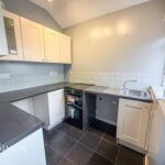 A range of wall and base units with complimentary work surface, single bowl sink unit with drainer, electric double cooker with four ring electric hob, plumbed for washing machine, part tiled walls, tiled flooring, UPVC double glazed rear window and back door.