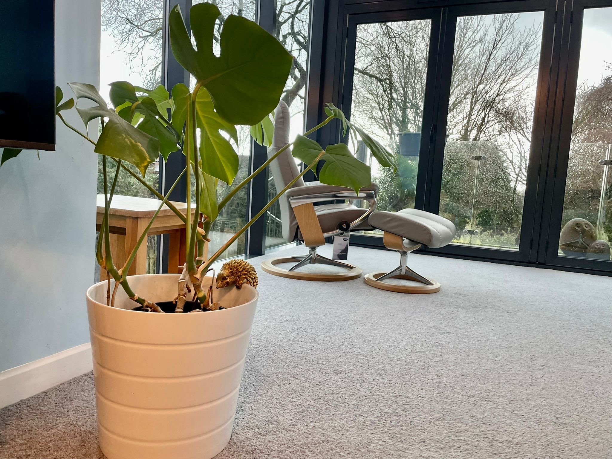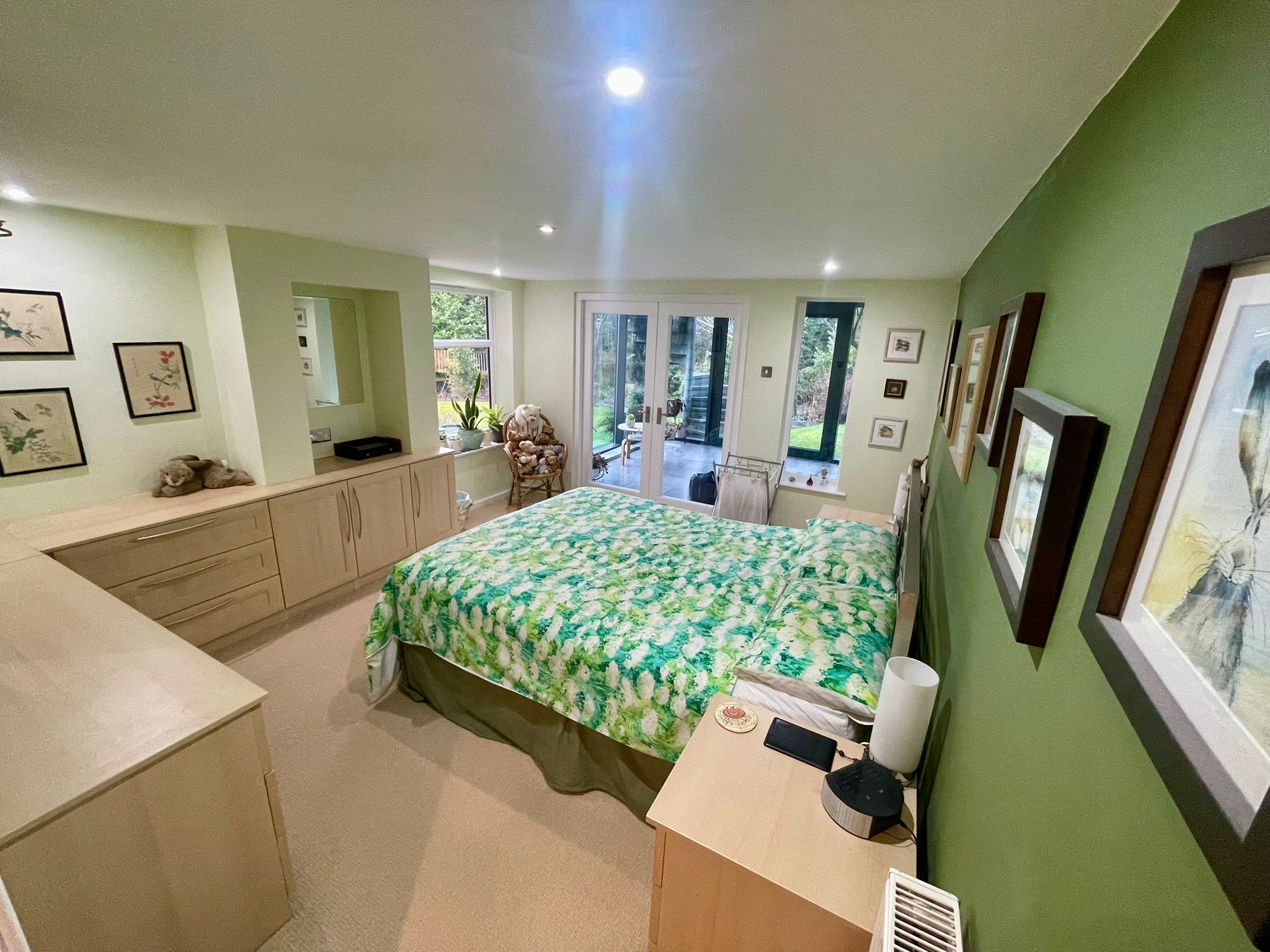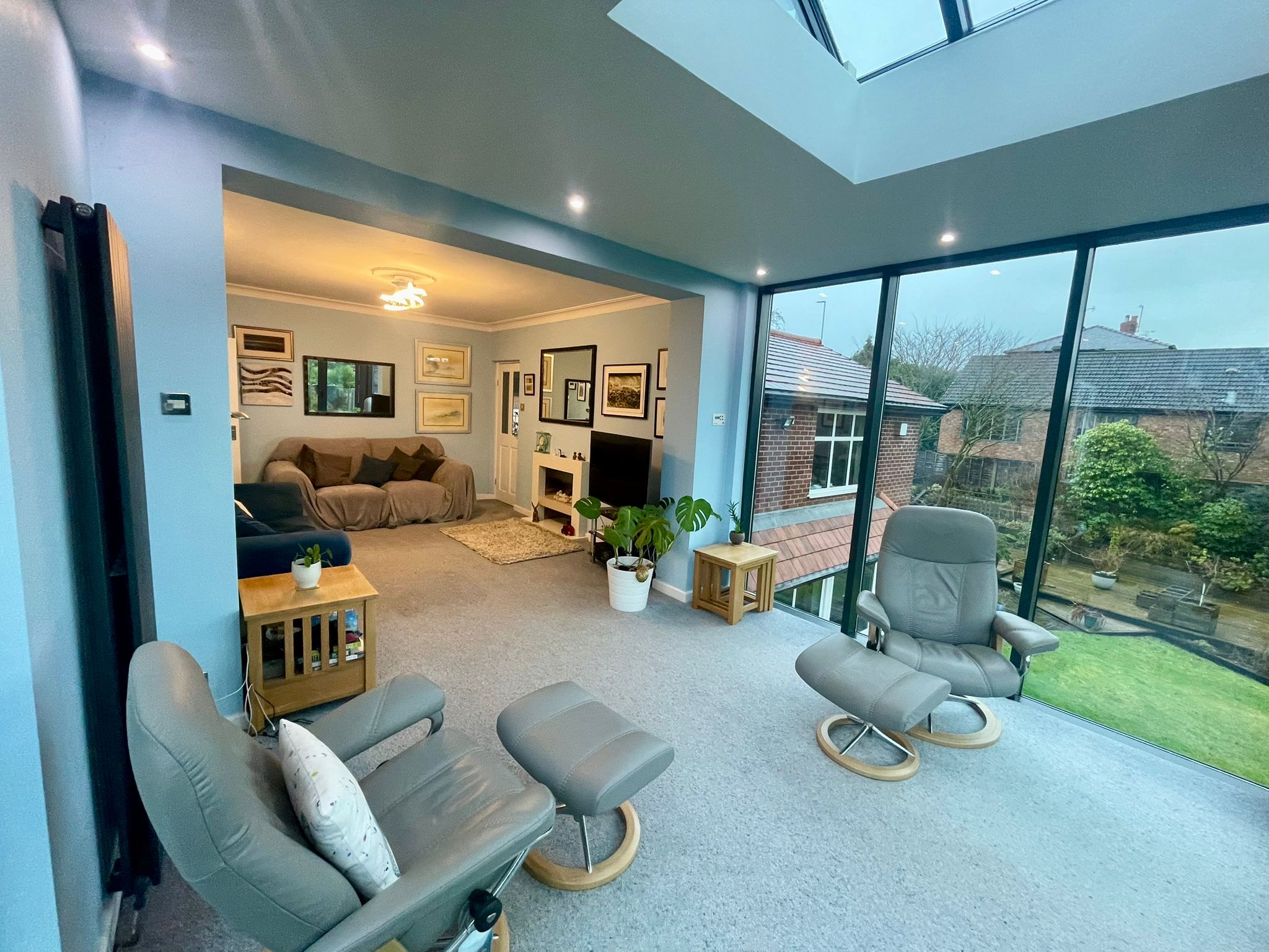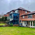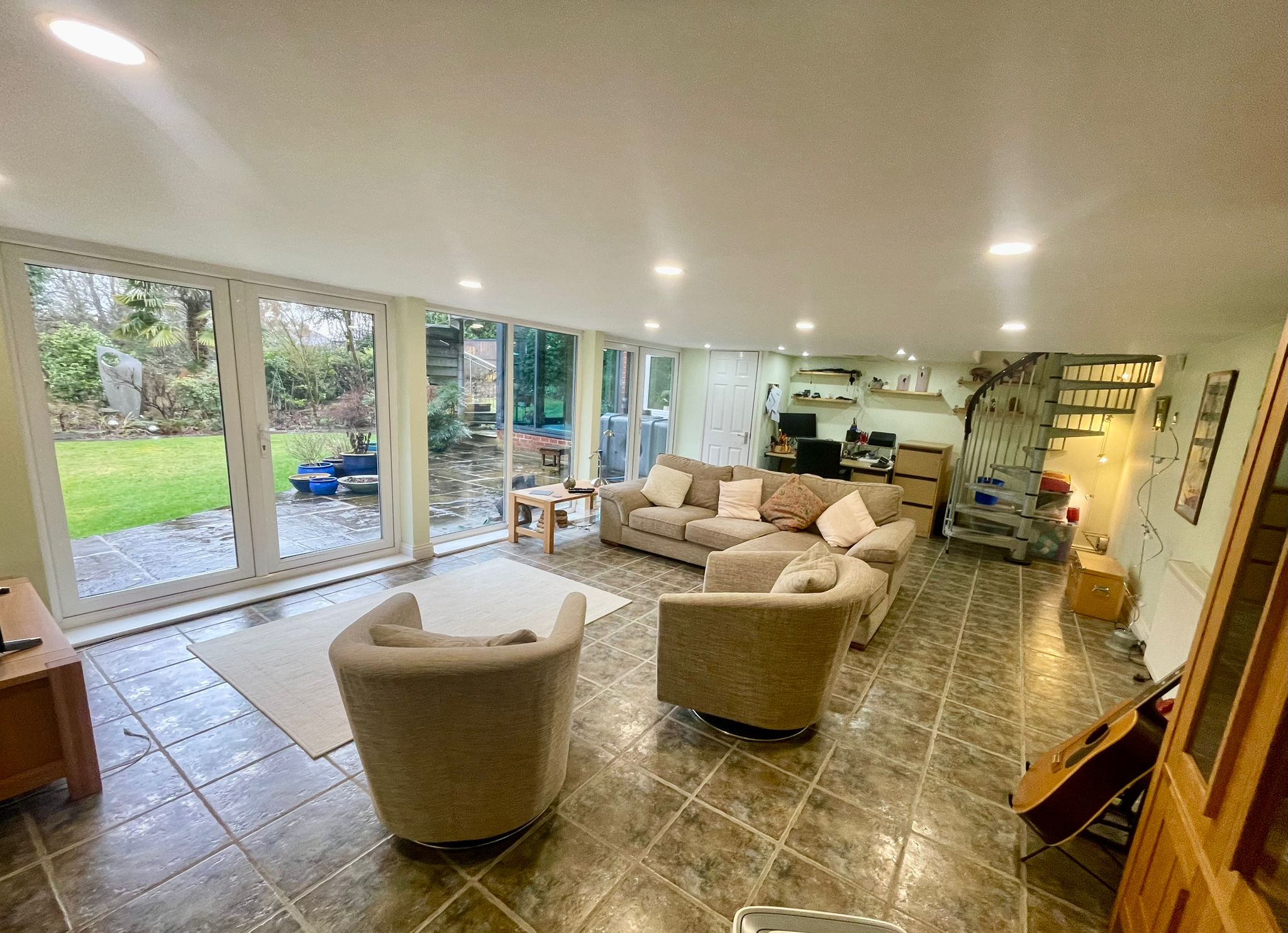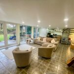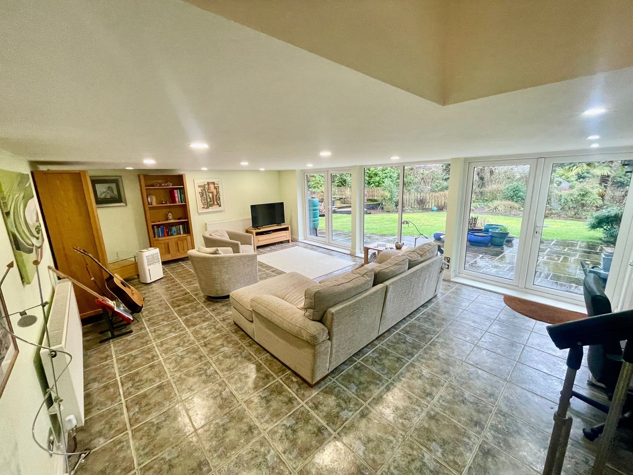 The true centrepiece of the home is the breathtaking double-storey glass extension, flooding the interior with natural light and seamlessly connecting the living space to the beautifully landscaped gardens beyond. This stunning architectural feature creates a remarkable sense of space and brings the outdoors in.