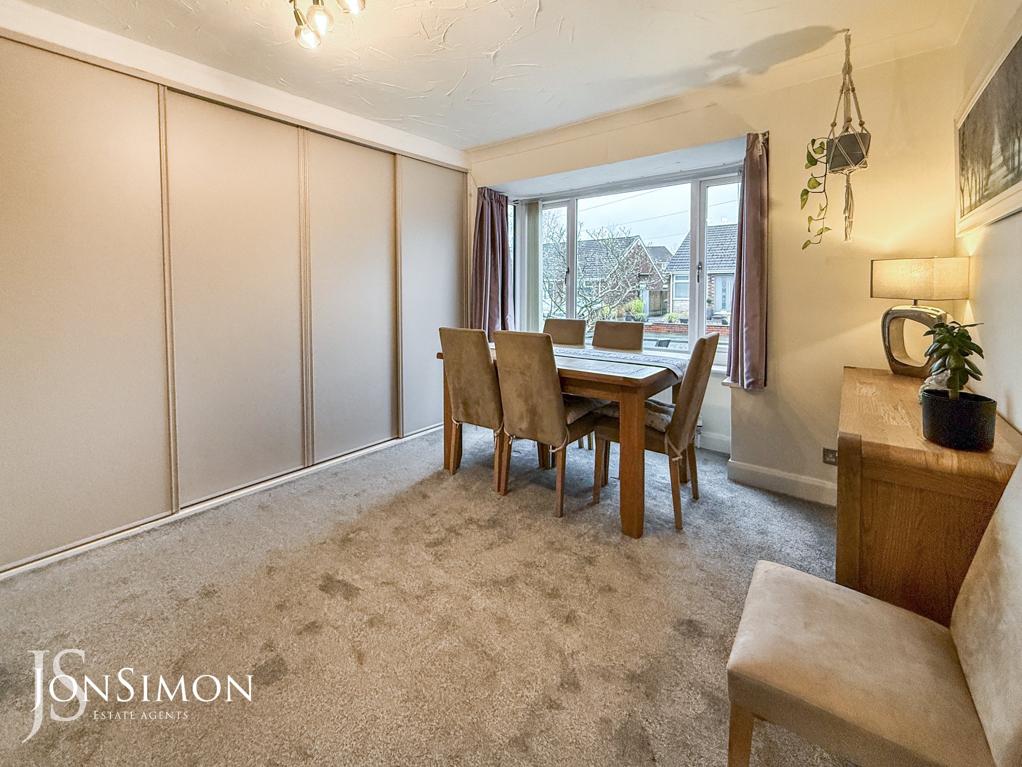 A large UPVC double glazed picture window, radiator, large storage cupboards and ceiling point.