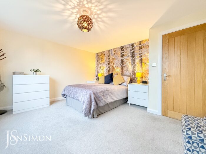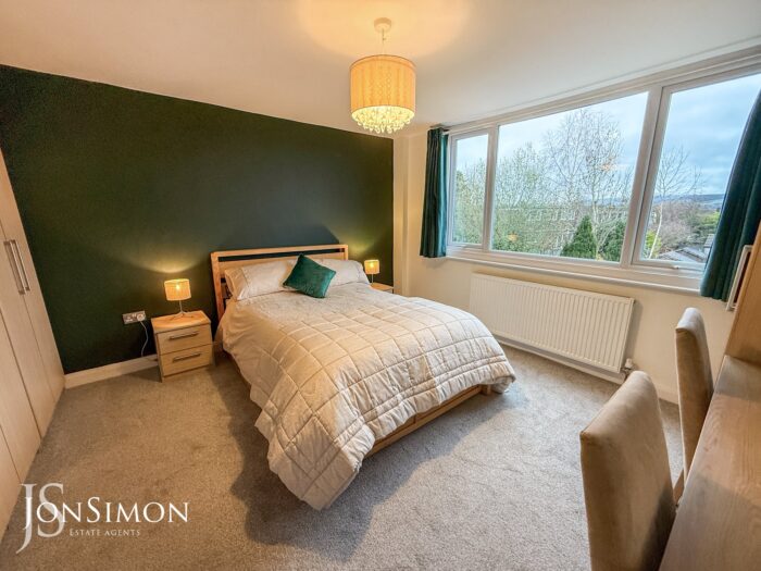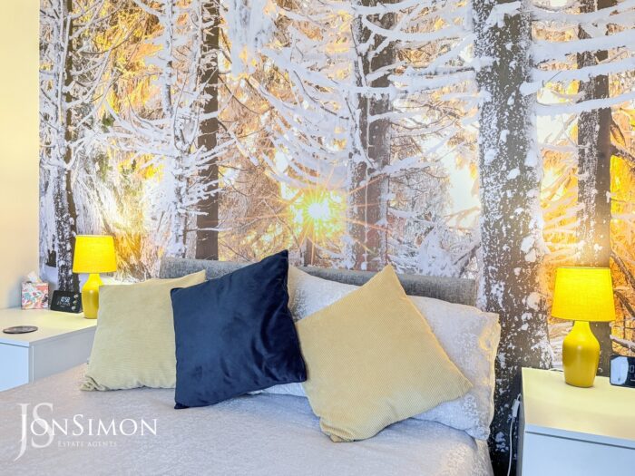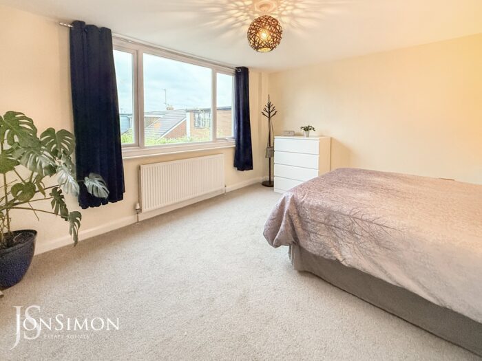 UPVC double glazed bay fronted window, radiator, fitted wardrobes/storage cupboards, ceiling coving and ceiling point.