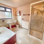 A two piece suite comprising of a low level w/c, wash hand basin, radiator, ceiling point and double glazed side window.