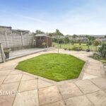 Rear: A large tarmac driveway for off-road parking, well-maintained lawn area with well established borders and shrubs. Open views over school playing field.