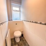 A two piece suite comprising of a low level w/c, wash hand basin, radiator, ceiling point and double glazed side window.