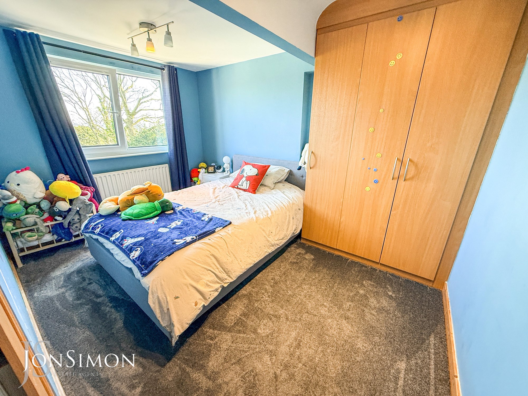 Double glazed side window, large storage cupboard into the eves and ceiling point.