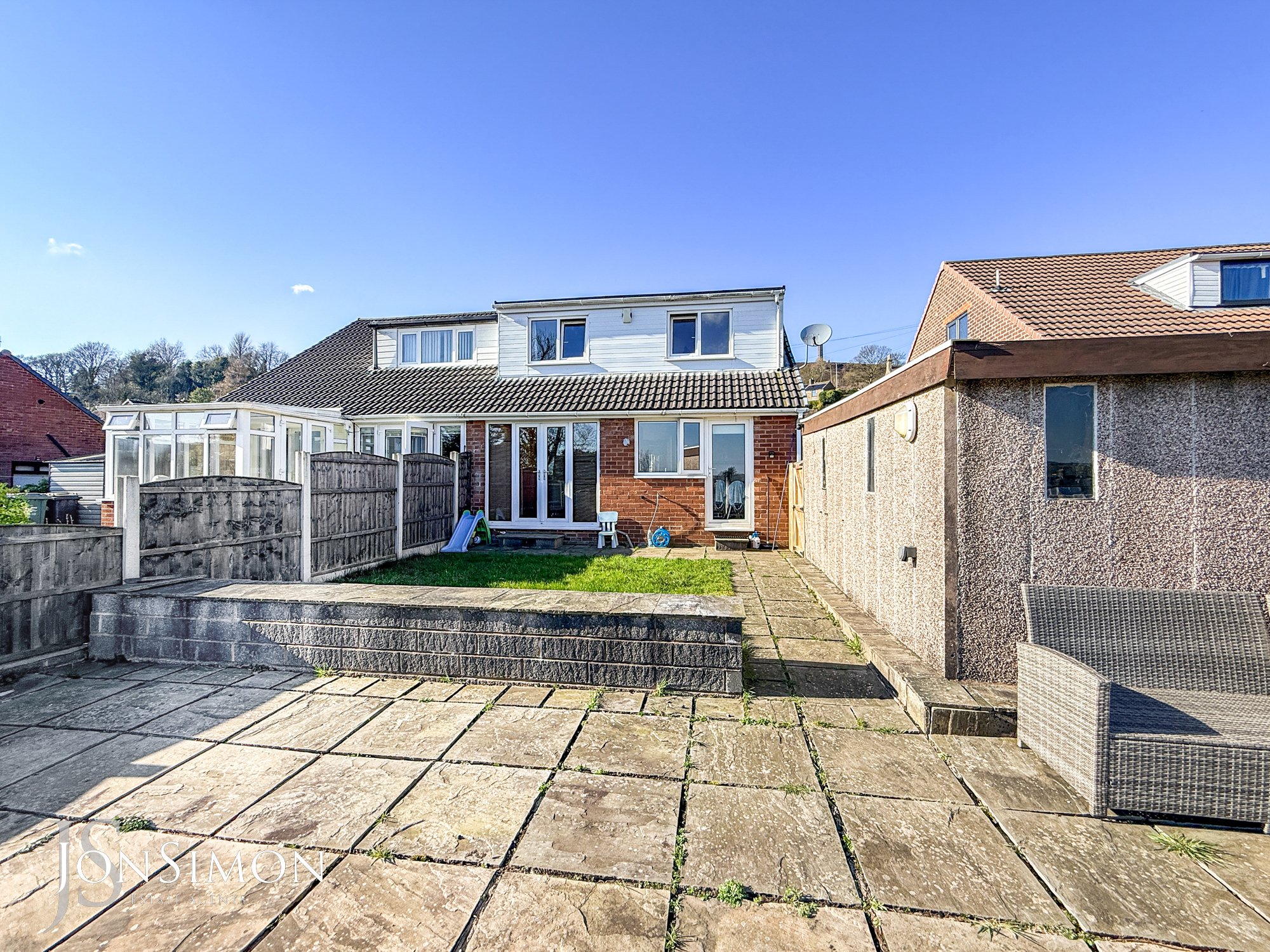 ** NO ONWARD CHAIN ** VIEWS FRONT AND REAR ** 3/4 BEDROOM SEMI-DETACHED FAMILY HOME ** POPULAR LOCATION ** LARGE DRIVEWAY & GARAGE ** This beautifully presented three/four-bedroom semi-detached home is situated in one of Ramsbottom’s most desirable residential locations. Perfectly positioned within walking distance of local schools and amenities, and just a short drive from the town centre, it offers an ideal setting for those seeking the charm of village living. Offered with no onward chain, the property benefits from gas-fired central heating and double glazing throughout. The accommodation includes a welcoming storm porch leading into an entrance hallway with a guest WC and a return staircase to the first floor. The ground floor features a spacious living room with a feature fire, a stylish fitted kitchen, a separate dining room opening onto the rear garden, and a versatile playroom/fourth bedroom. Upstairs, there are three generously sized bedrooms with fitted wardrobes and a stunning three-piece family bathroom. Externally, the property offers a well-maintained front garden and a long tarmac driveway providing ample off-road parking leading to a single garage. To the rear, there is a private, low-maintenance garden laid to lawn and paving, with a paved patio area enjoying pleasant views over adjoining school playing fields. Viewing is highly recommended and strictly by appointment via our Ramsbottom office.