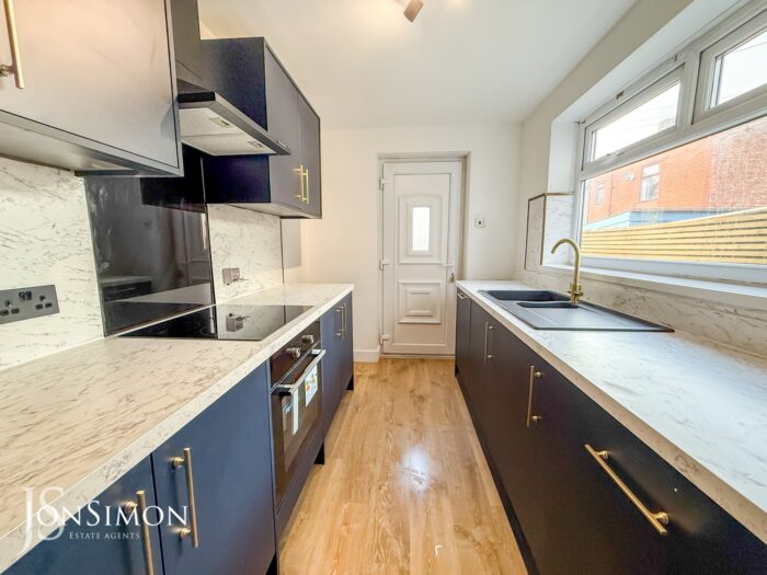 3.55m x 2m (11'8" x 6'7") - Modern range of wall & base units with contrasting worktops incorporating a 1 ½ bowl sink unit. Built in appliances to include electric hob, dishwasher, electric oven and extractor unit. Upvc double glazed window to the side and access onto the rear yard via upvc door.