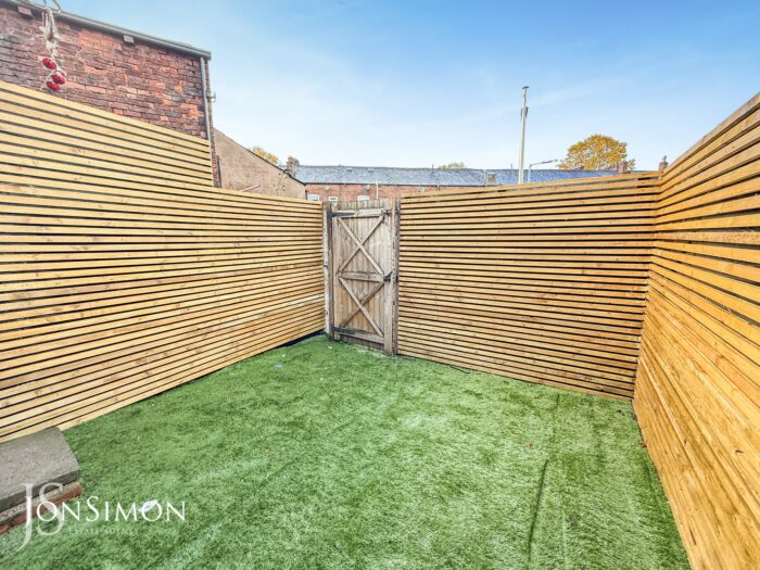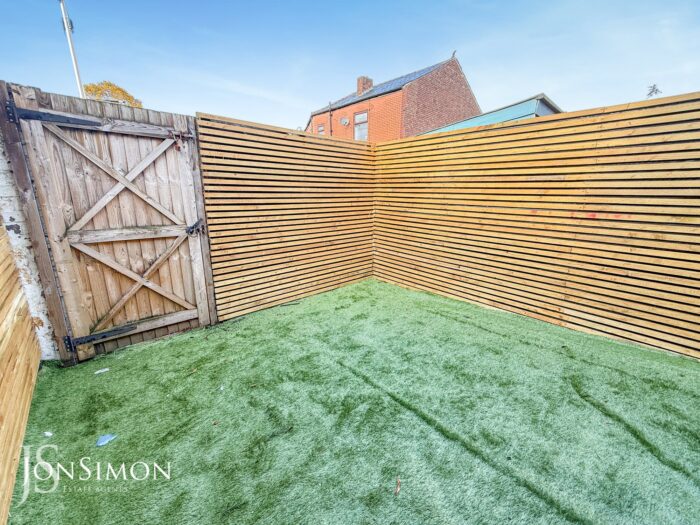 The property has a lawned front garden and enclosed Astro Turf rear yard.