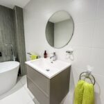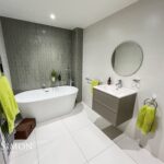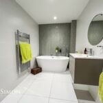 3.38m x 1.88m (11'1 x 6'2) - Electric thermostatic towel rail, low basin WC, wall mounted wash basin, freestanding bath, tiled elevations, spotlights, extractor fan and tiled flooring.