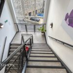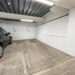 Secure electric gated car park underground for one vehicle and communal outdoor seating areas.