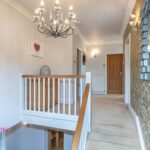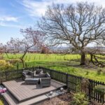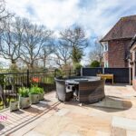 To the first floor, a generous landing provides access to five well-proportioned bedrooms. The principal suite benefits from a luxurious en-suite shower room with underfloor heating, while the remaining bedrooms are served by a stylish four-piece family bathroom with underfloor heating, enhanced by attractive stained glass windows. Externally, the property is approached via a beautifully maintained front garden and a substantial paved courtyard providing ample off-road parking for multiple vehicles. The rear garden is a particular highlight, an impressive, mature space with extensive patio areas, enjoying a private south-facing aspect overlooking picturesque open pastureland.