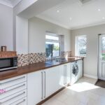 A range of wall and base units with complimentary work surface, integrated freezer, plumbed for washing machine and dryer, single bowl sink unit with drainer, radiator, ceiling coving, loft access, ceiling spotlights, UPVC double glazed side and rear window, UPVC double glazed back door.