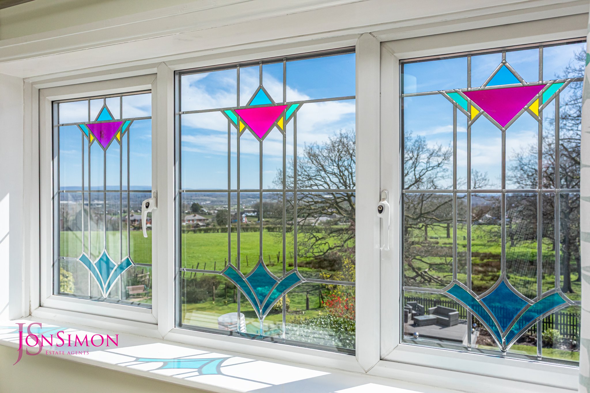 UPVC double glazed stained glass side window, wall lights, ceiling rose, radiator and ceiling points.
