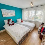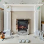 UPVC double glazed front window, a modern wall mounted electric fire, radiator, laminate flooring, ceiling spotlights, storage cupboards housing the electric meters and gas boiler.