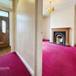 UPVC double glazed front window, feature fireplace with surround, radiator, meter cupboard, ceiling coving and ceiling point.