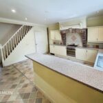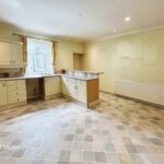 A range of wall and base units with complementary worksurface, four ring gas hob, electric oven, plumbed for dishwasher, one a half bowl sink unit with drainer, part tiled walls , storage cupboard, radiator, ceiling coving, ceiling spotlights, UPVC double glazed rear window and stairs leading into the first floor landing.