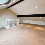 Storage cupboard, radiator, ceiling coving, ceiling points and wooden stairs leading to the loft room.