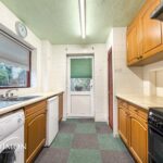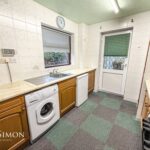 Range of wall and base units with complementary work surfaces, single bowl sink unit with drainer, electric cooker with four ring electric hob, extractor unit above, plumbed for washing machine, radiator, part tiled walls, storage cupboard, ceiling point, double glazed side window and UPVC double glazed door.
