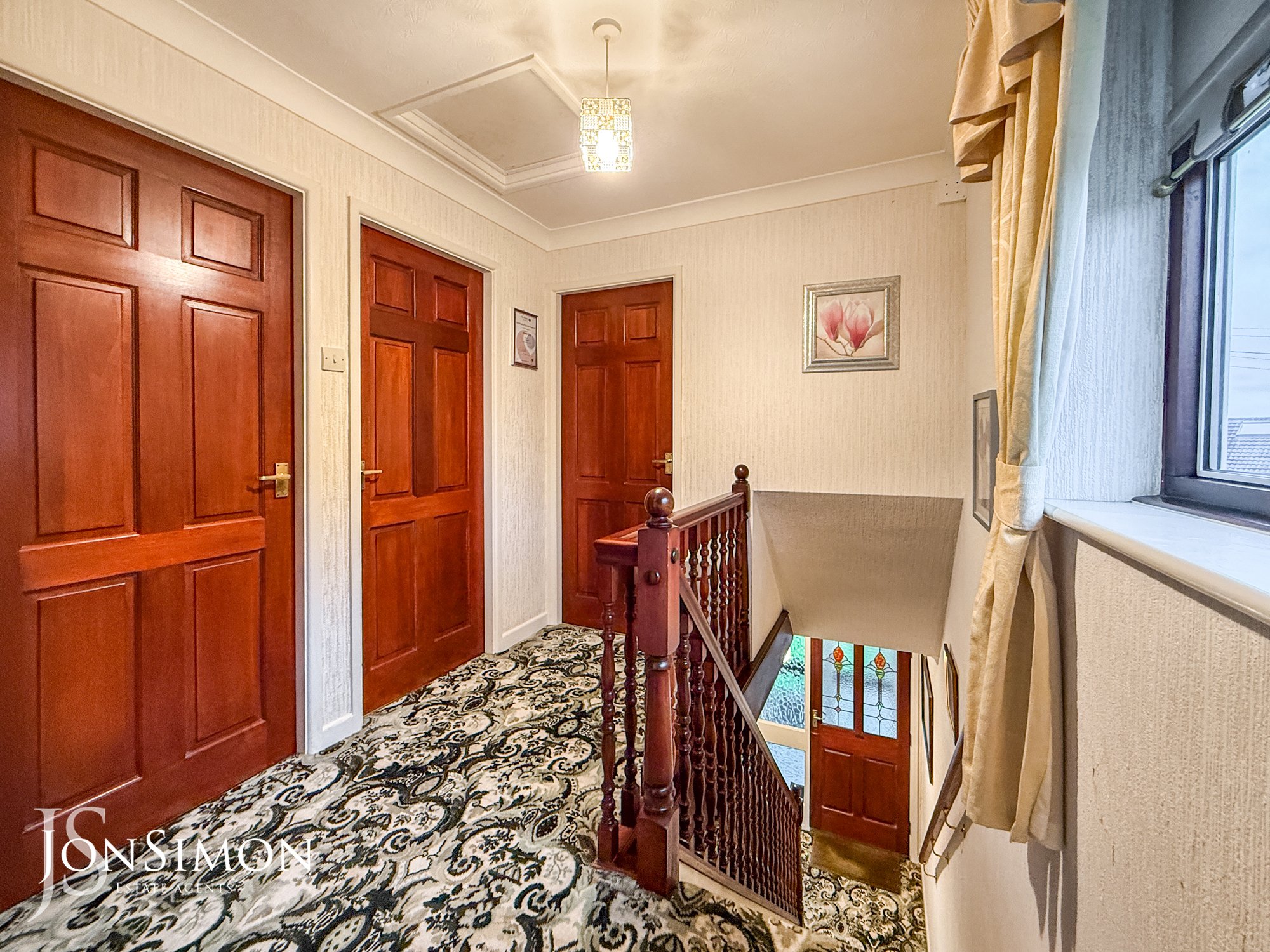 ** SOLD WITH NO CHAIN - VACANT POSSESSION ** SITUATED ON A QUIET CUL-DE-SAC ** GUEST WC & SHOWER ROOM ** TWO RECEPTION ROOMS & CONSERVATORY ** An attractively positioned three-bedroom link-detached home, occupying an elevated spot within a small, established cul-de-sac on the lower slopes of Holcombe Hill. The property enjoys a private rear garden and is ideally located close to local shops, amenities, and Woodhey High School. Offered for sale with vacant possession and no onward chain, the home benefits from gas central heating, double-glazed windows and external doors throughout. The accommodation comprises an entrance porch leading to a welcoming hallway, a spacious lounge, separate dining room, and a fitted kitchen opening into a conservatory extension overlooking the rear garden. To the first floor are three well-proportioned bedrooms and a three-piece shower room. Externally, the property features a block-paved driveway providing ample off-road parking and access to a single garage. The well-maintained front and rear gardens offer an ideal outdoor space for families to enjoy. Early viewing is highly recommended and is strictly by appointment through our Ramsbottom office.
