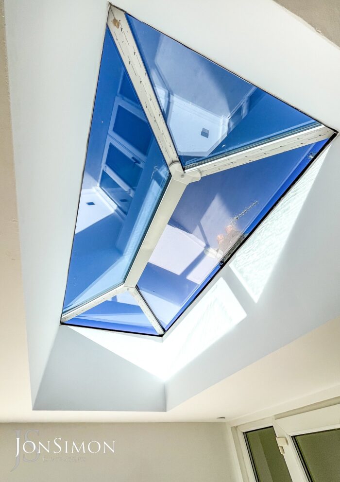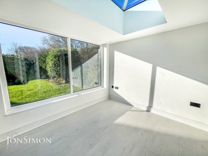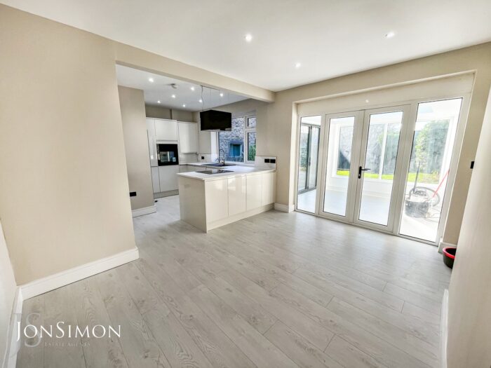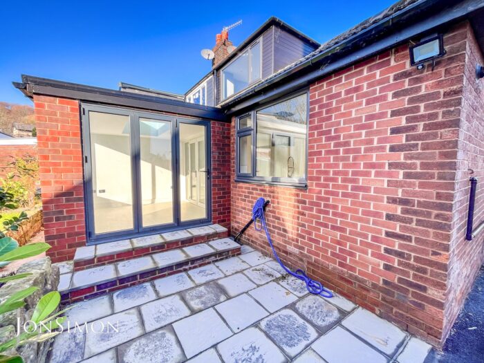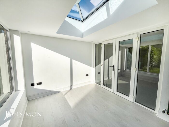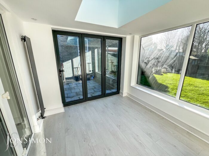 Aluminium Bi-Folding sliding patio doors, UPVC double glazed rear window, double glazed lantern, laminate flooring, radiator and ceiling spotlights.