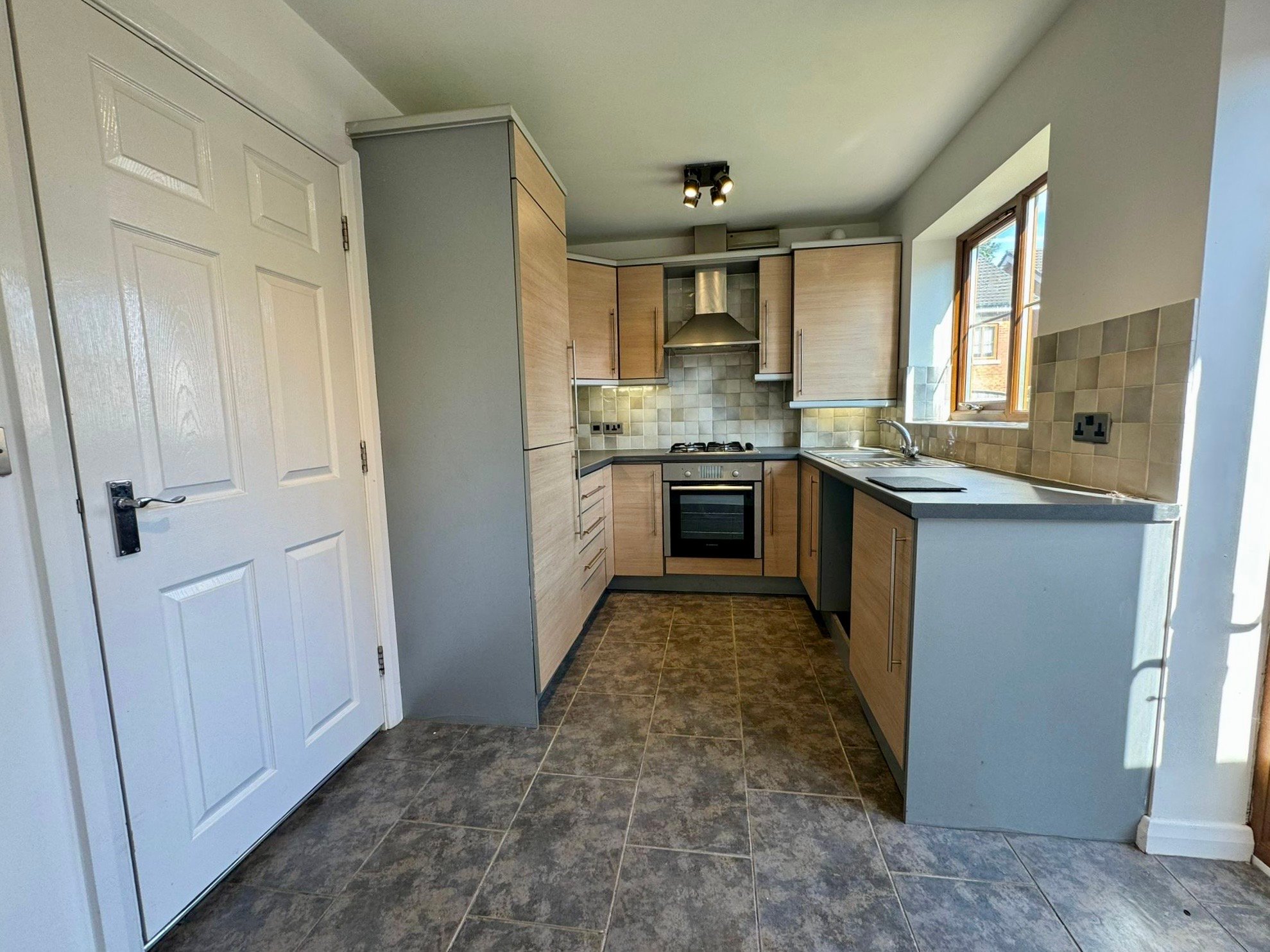4m x 2,3m (13'1" x 6'7") - Range of modern fitted wall & base units with contrasting grey worktops and incorporating a 1 ½ bowl sink unit with tiled elevations and brushed stainless steel effect sockets. Built in appliances to include gas hob, electric oven and extractor unit, integrated dishwasher, fridge, freezer and washing machine. Tiled flooring, UPVC double glazed window to the rear and access onto the rear gardens via French patio doors. Understairs storage.