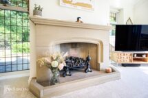 5.46m(17'11'') x 4.82m(15'10'') An attractive main living room, with windows on two elevations, enjoying views of woodland and over fields to front. A York stone 'Minster' style fireplace provides the main focal point, fitted 'coals effect' gas fire, ornate ceiling cornice, recessed lighting, wall picture light. French doors open onto a tiled balcony, complete with wrought-iron balustrade, again making the most of the views from this slightly elevated setting.